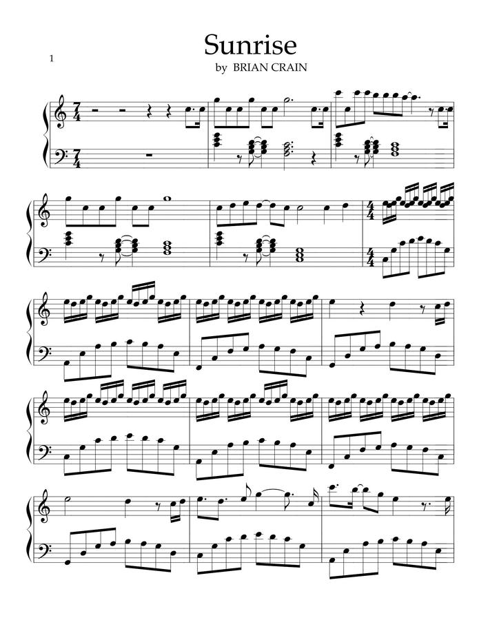 브라이언 크레인의 sunrise 피아노악보입니다:)