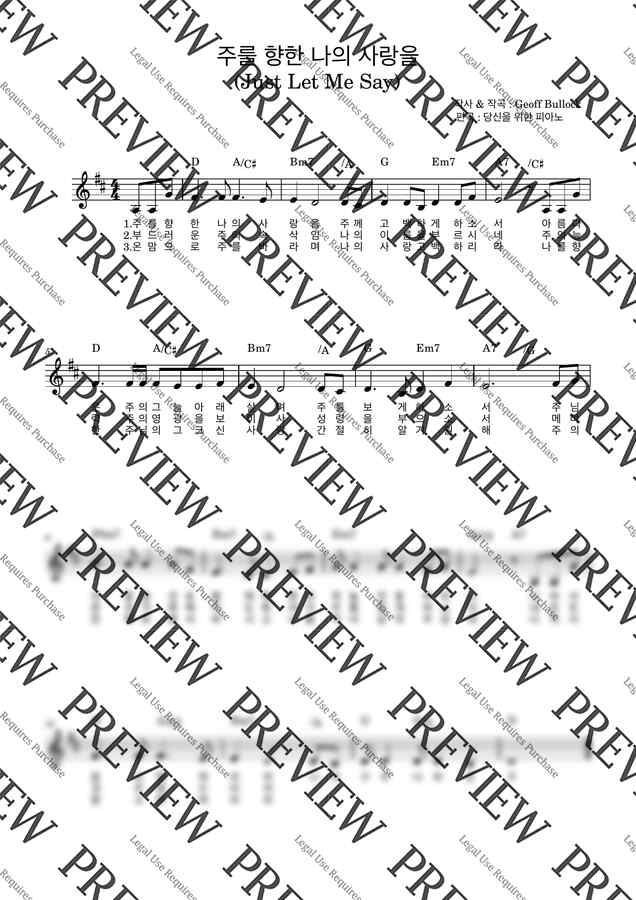 Geoff Bullock - 주를 향한 나의 사랑을(Just Let Me Say) (D키,가사,코드) by 당신을 위한 피아노