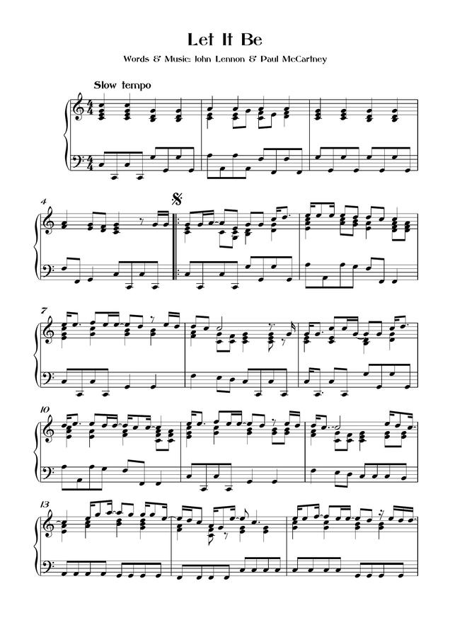 비틀즈의 명곡 렛잇비 피아노악보입니다:)