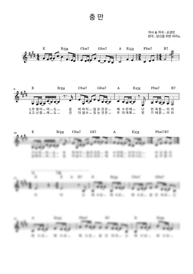 손경민 - 충만(Filled) (E키,가사,코드) by 당신을 위한 피아노