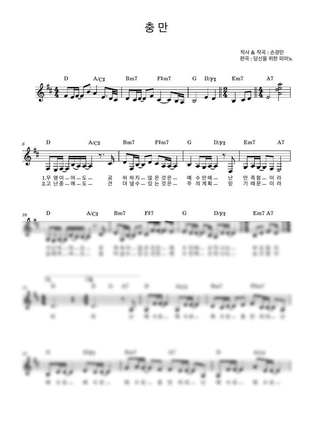 손경민 - 충만(Filled) (D키,가사,코드) by 당신을 위한 피아노