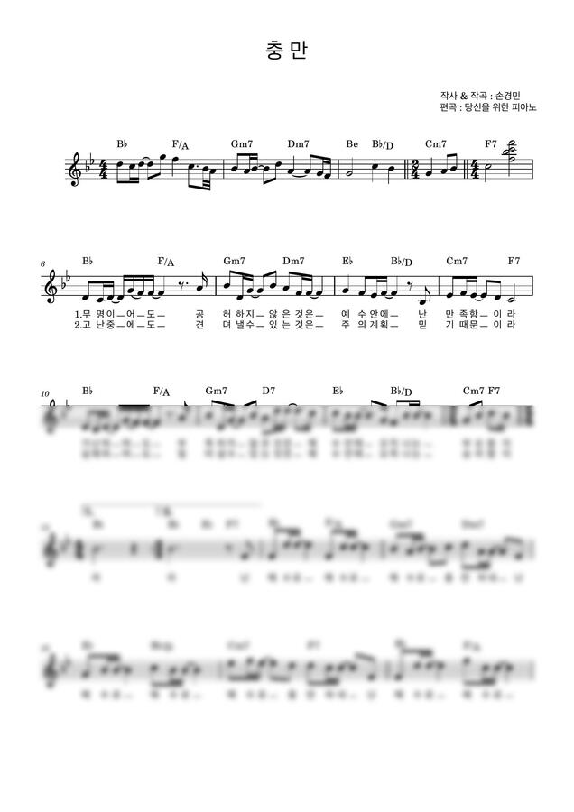 손경민 - 충만(Filled) (Bb키,가사,코드) by 당신을 위한 피아노