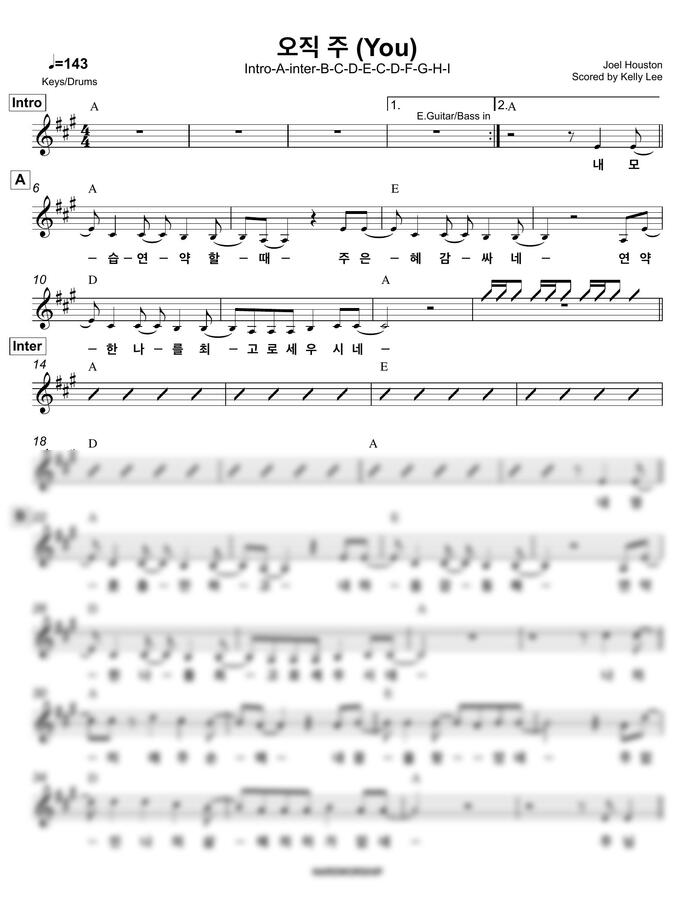 오직주 You 예수전도단 음원 그대로 화음도 포함된 밴드 채보 악보입니다.