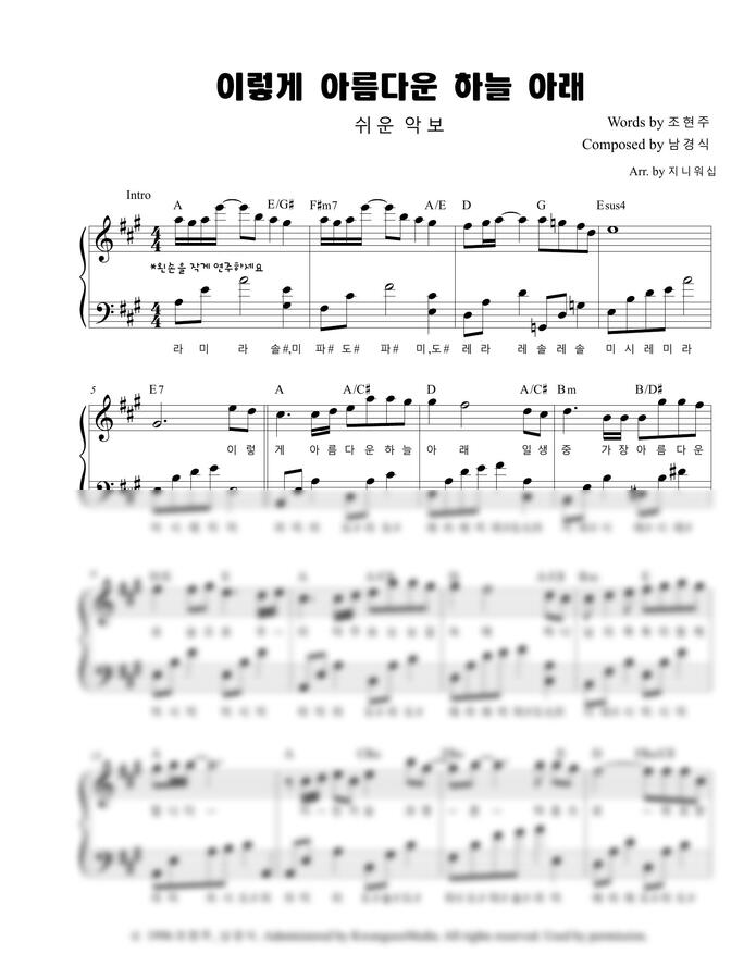 이렇게 아름다운 하늘 아래 mr 악보 A키 바로가기 https://www.mapianist.com/sheet/102037