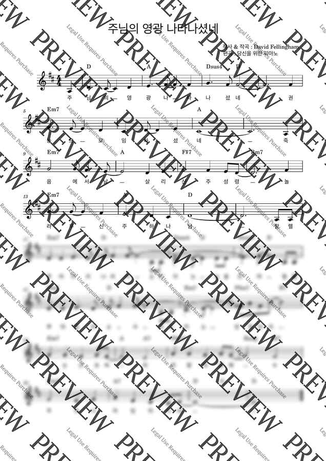 David Fellingham - 주님의 영광 나타나셨네 (D키,가사,코드) by 당신을 위한 피아노