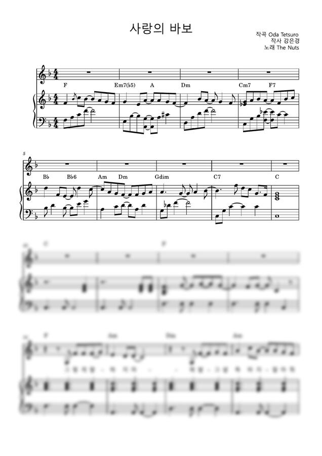 원곡은 C Key이며 악보는 F Key로 제작했습니다