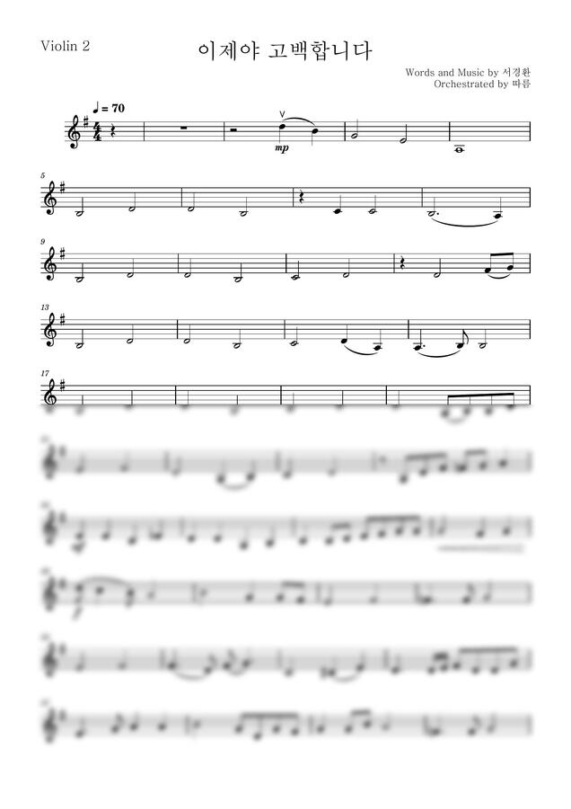 찬양팀/성가 반주를 위한 바이올린 악보입니다. (바이올린2)
