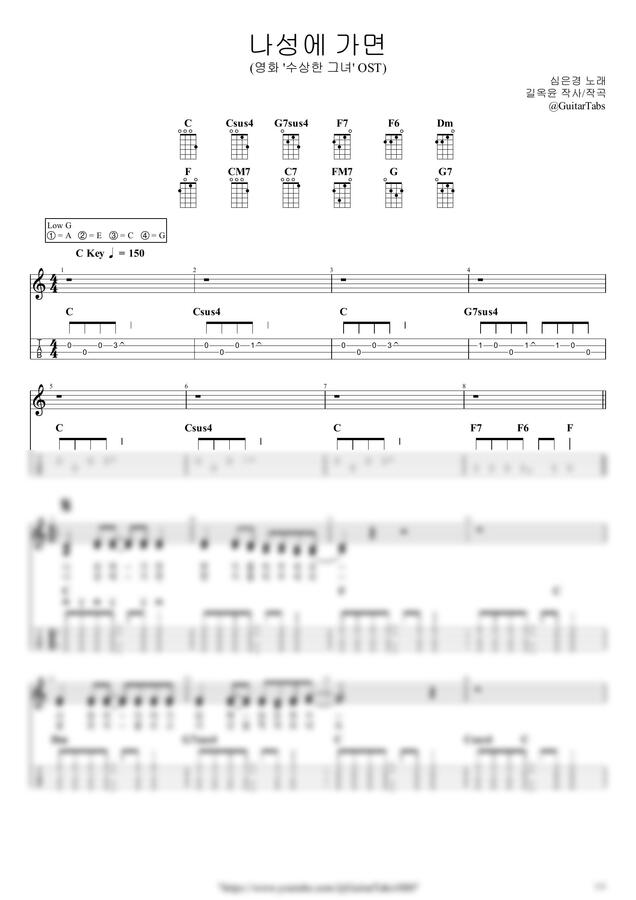 C Key / 3p / 2단(노래+반주) / 5선(Staff) / 타브(TAB) / 가사(Lyrics) / 코드(Chords)