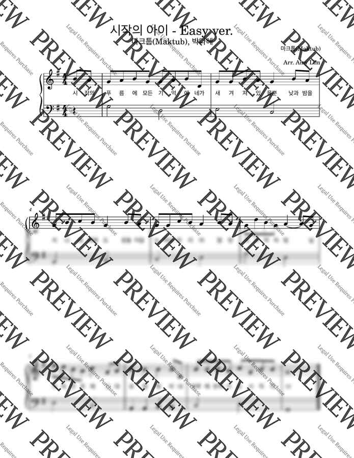 박혜원,마크툽(Maktub) - 시작의 아이 (흰건반으로만매우쉬움) by Amy teacher