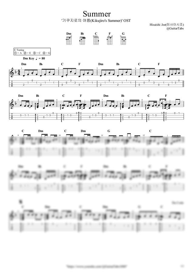 Hisaishi Joe - [지브리ジブリ OST] Summer(기쿠지로의 여름 OST) by GuitarTabs0