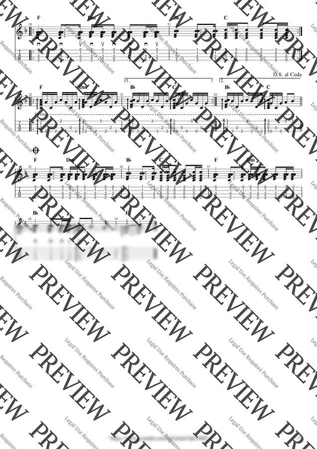 Dm Key / 2p / 1단(솔로) / 5선(Staff) / 타브(TAB) / 코드(Chords)