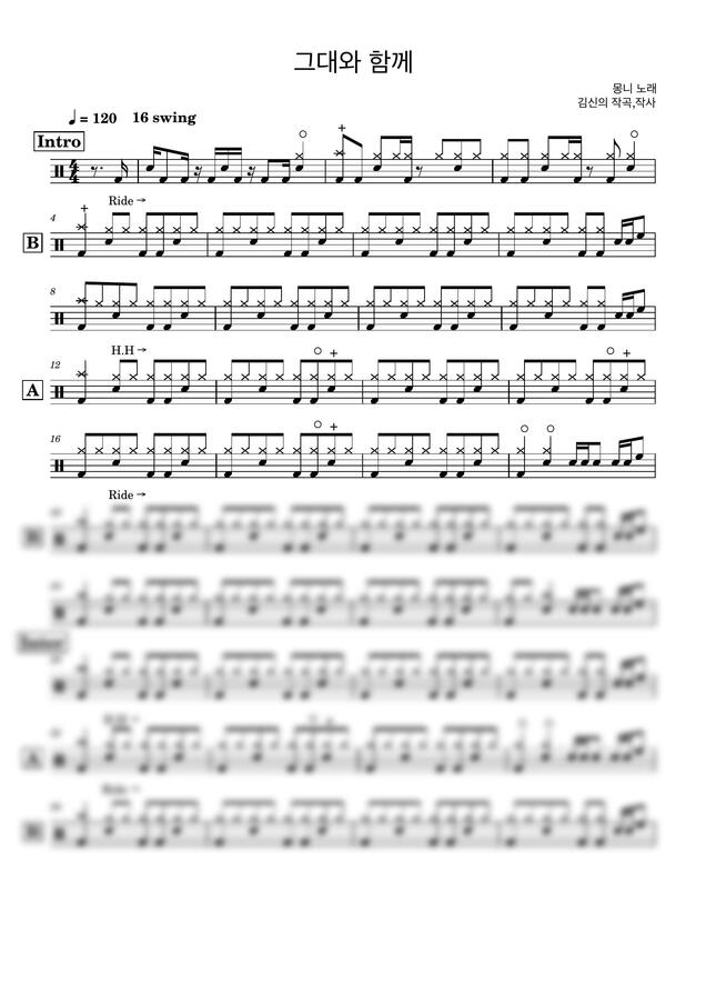 몽니 - 그대와 함께 (드럼악보,쉬운악보) by 클릭드럼