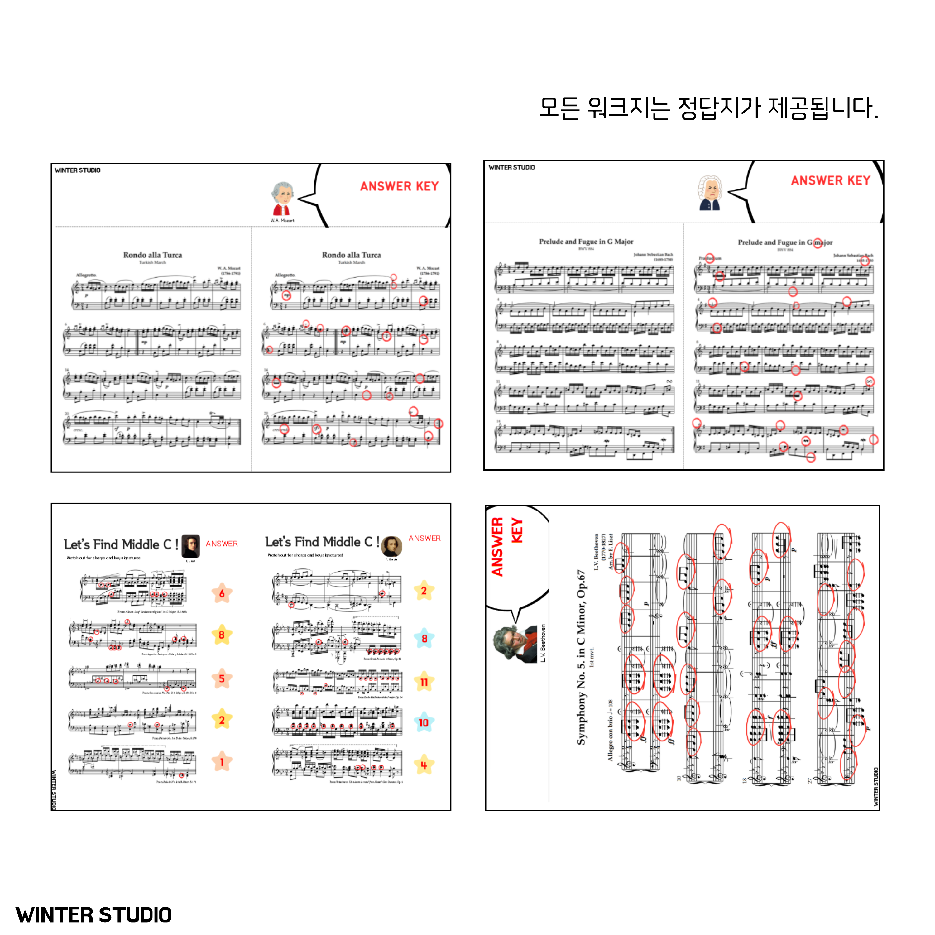 수업 준비 시간 절약, 바로 사용 가능한, 한 번 구입으로 평생 활용하는 음악 워크지, 겨울스튜디오입니다.
