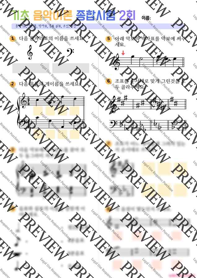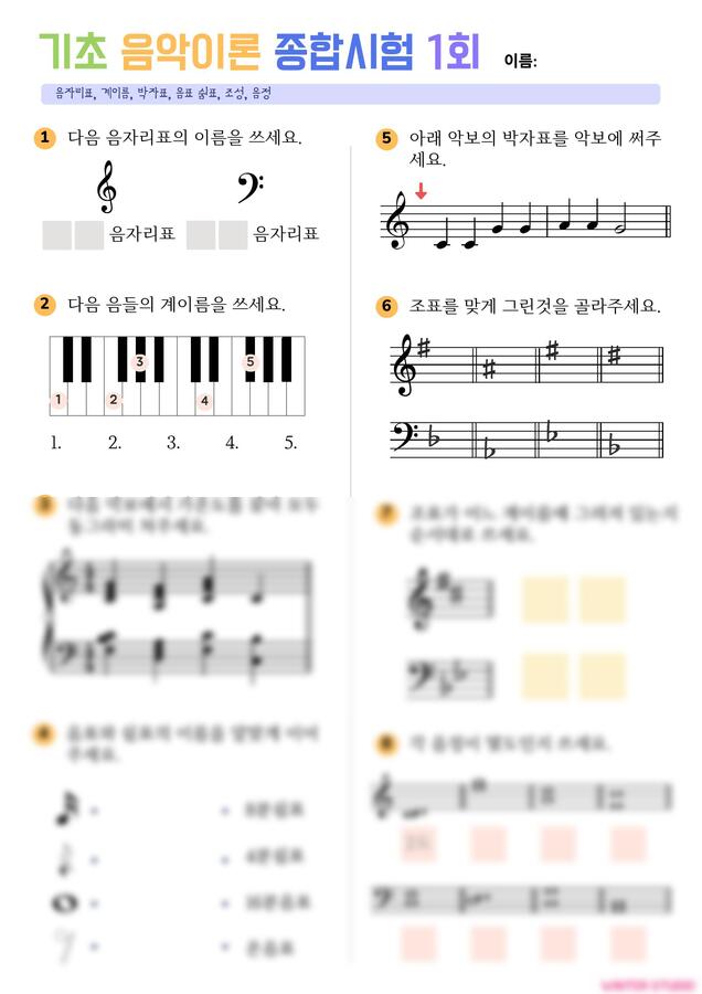 음악 워크지 - 음악이론 종합 문제집 9 TEST (한국어/영문) by WINTERSTUDIO 1p 미리보기