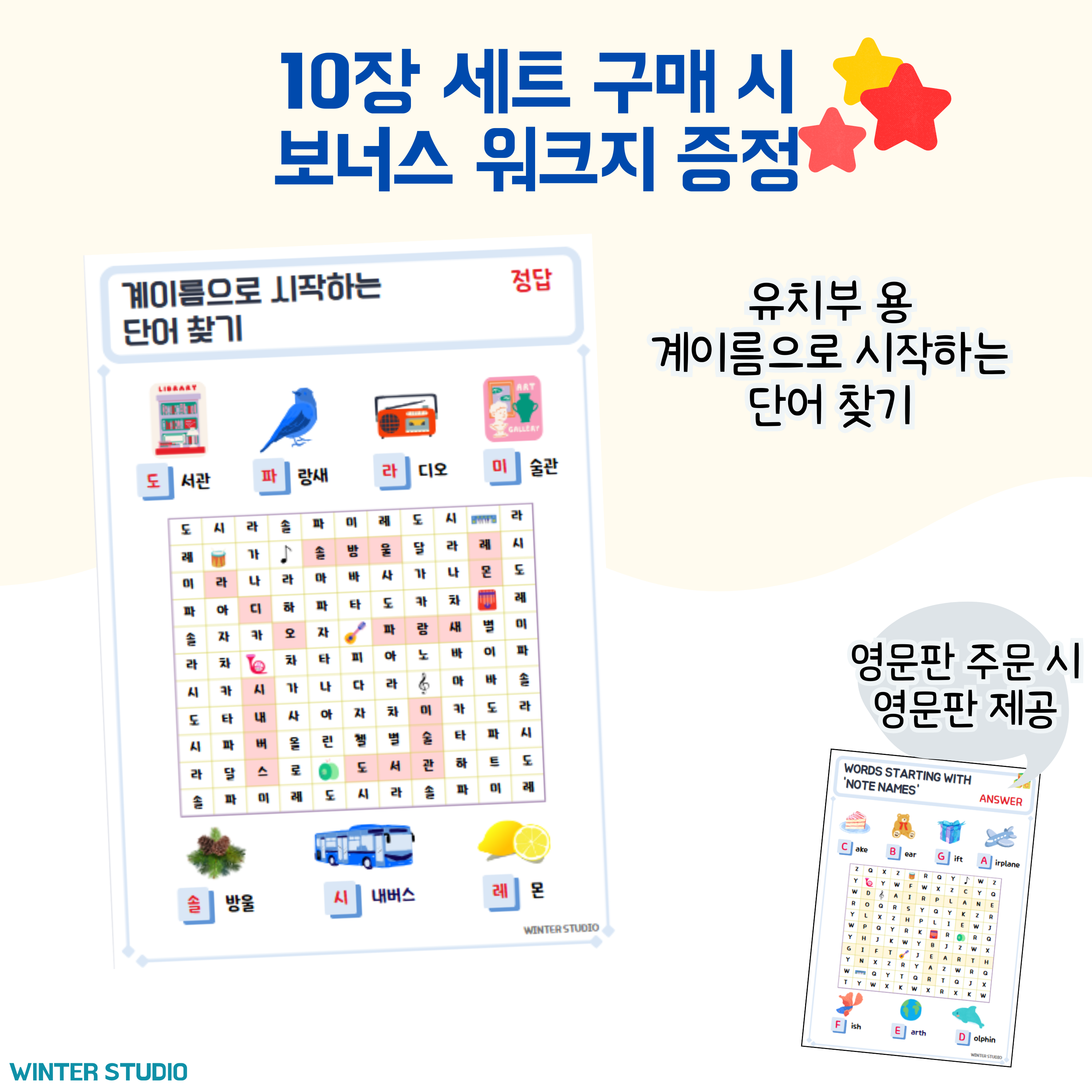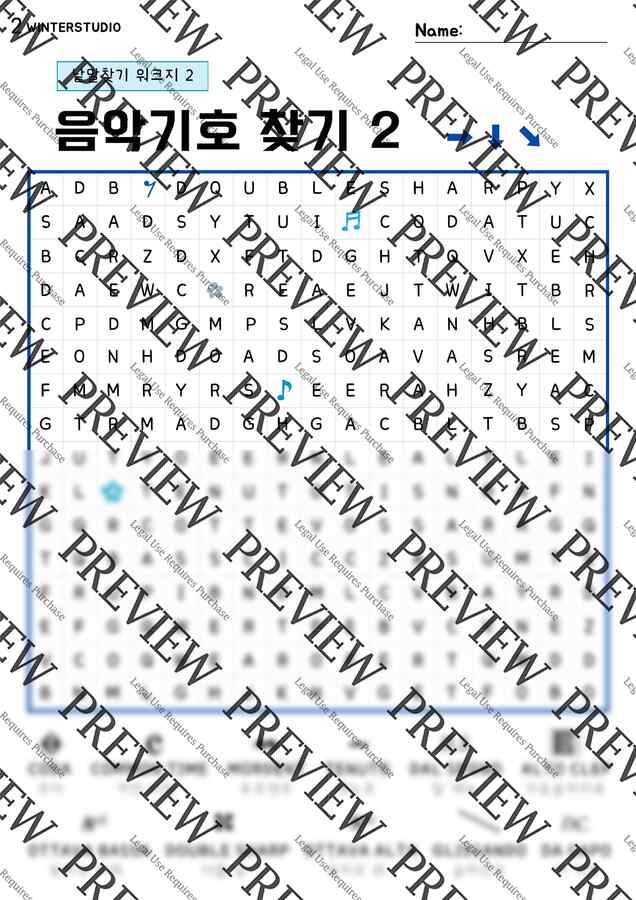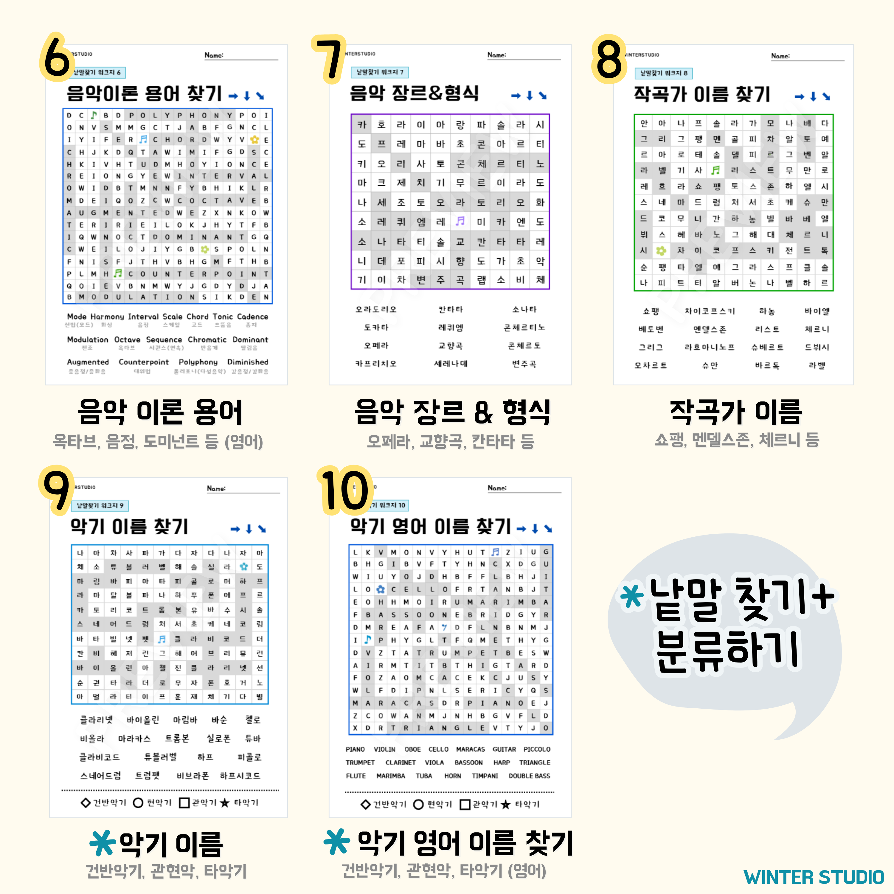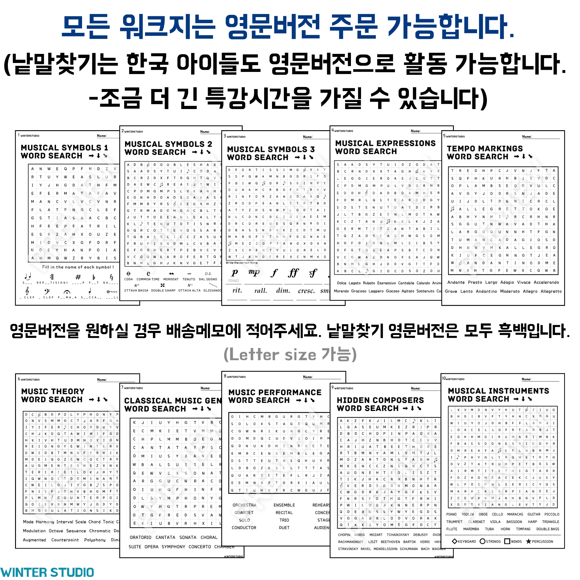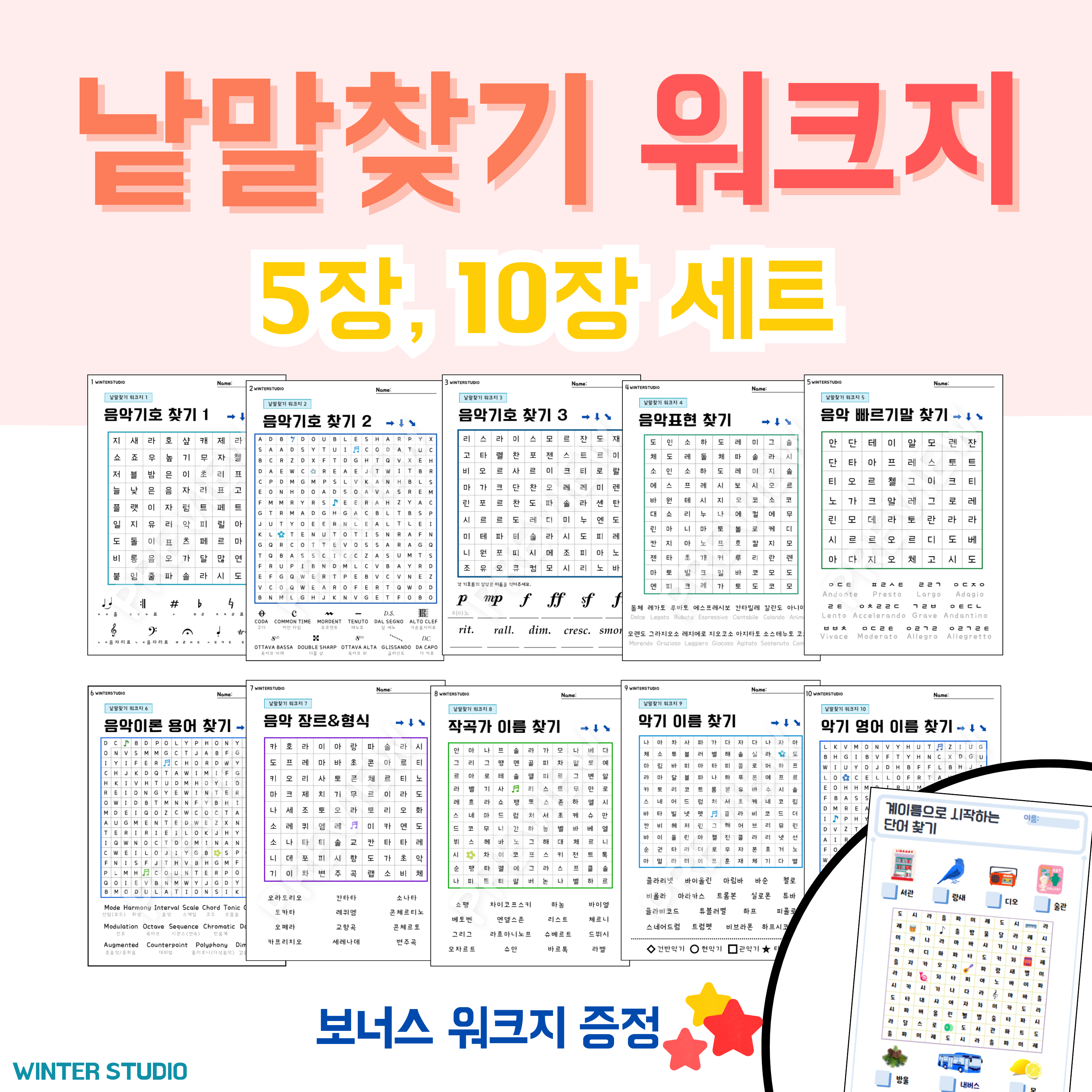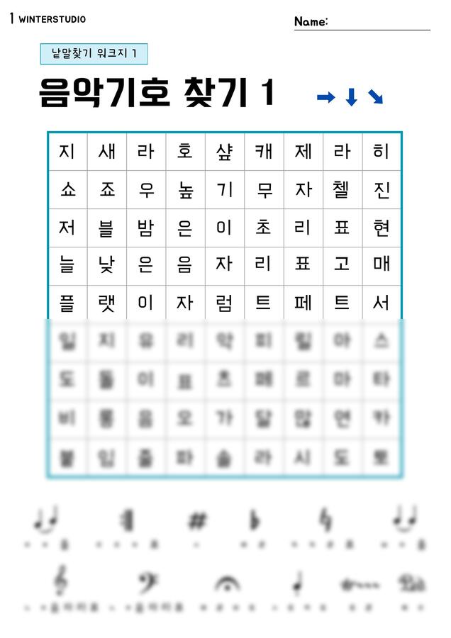 수업 준비 시간 절약, 바로 사용 가능한, 한 번 구입으로 평생 활용하는 음악 워크지, 겨울스튜디오입니다.