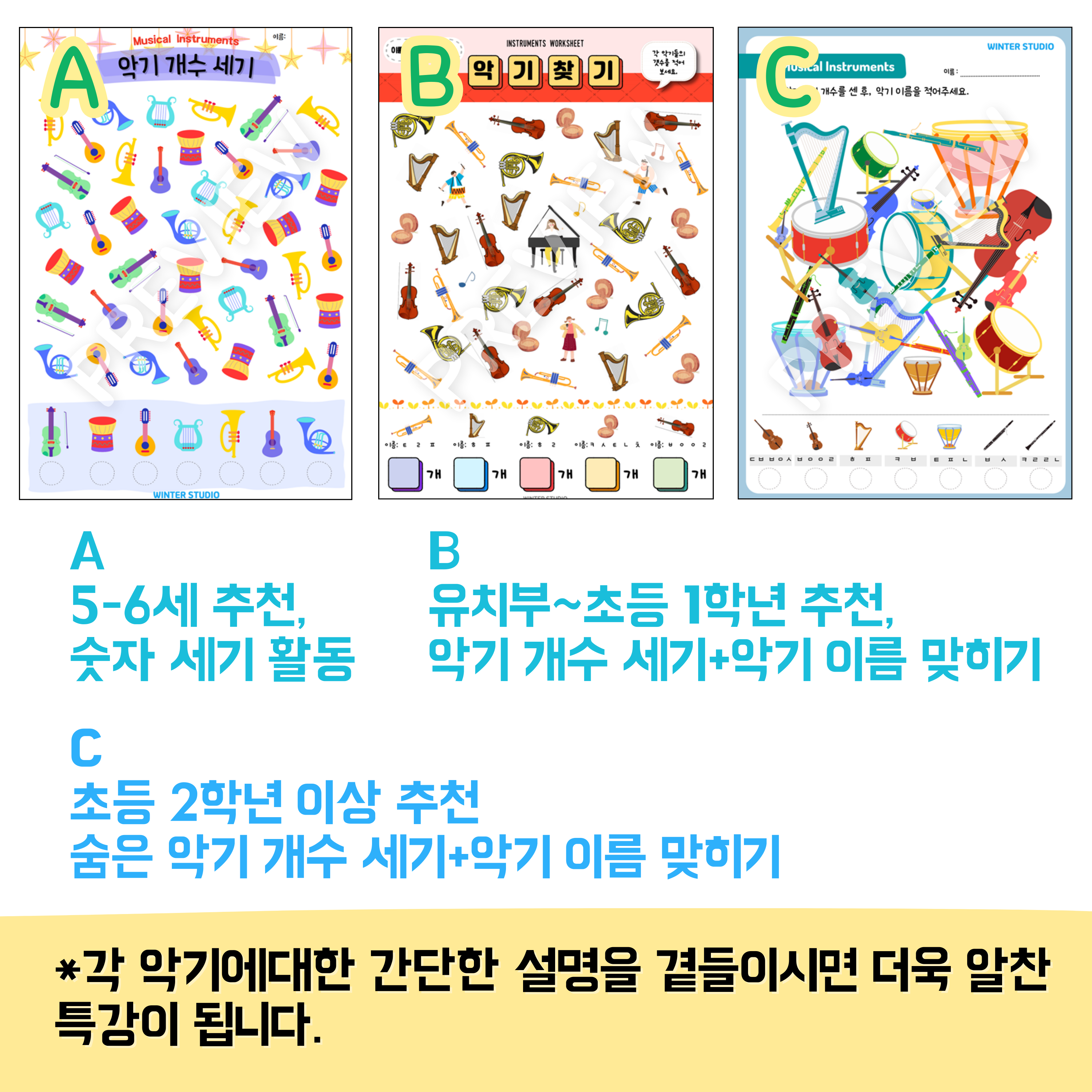 수업 준비 시간 절약, 바로 사용 가능한, 한 번 구입으로 평생 활용하는 음악 워크지, 겨울스튜디오입니다.