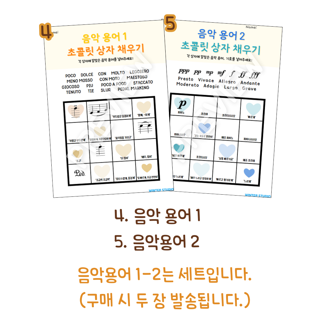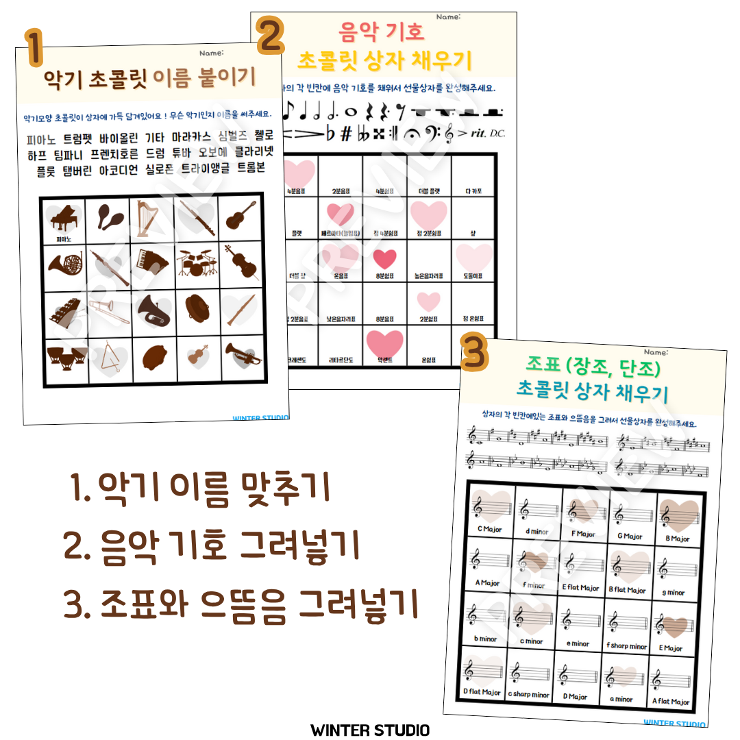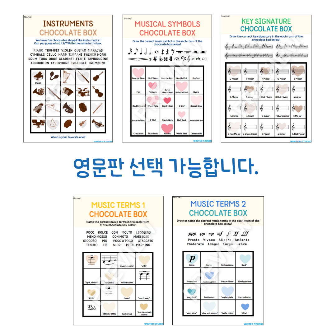 음악 워크지 - 음악 초콜릿상자 채우기 5 pages (한국어/영문) by WINTERSTUDIO