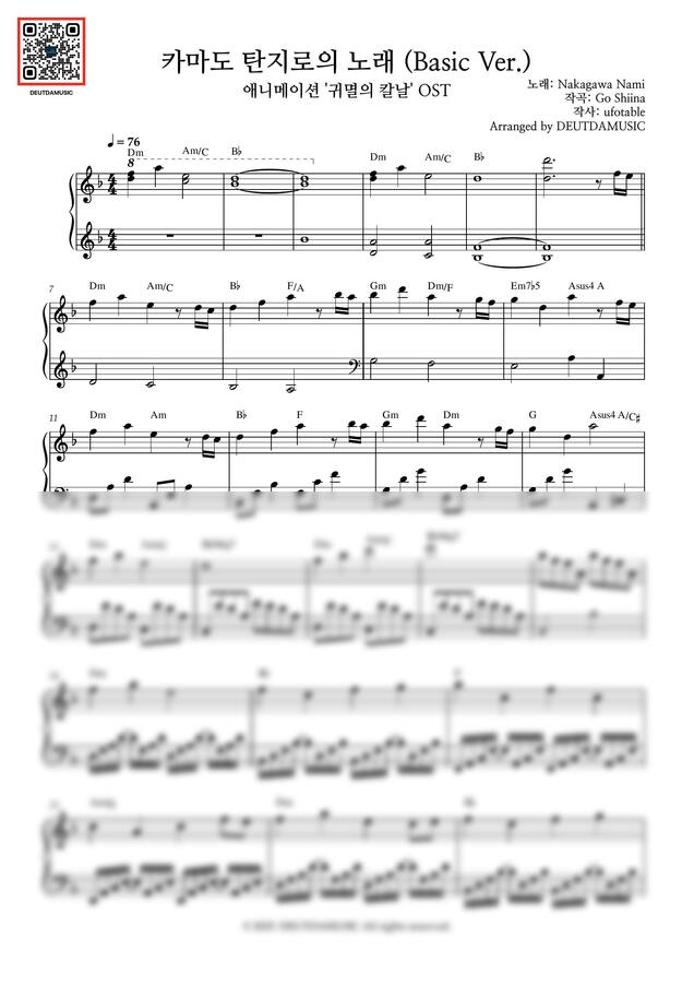 Go Shiina - 카마도 탄지로의 노래(귀멸의 칼날 OST) (쉬운악보) by DEUTDAMUSIC