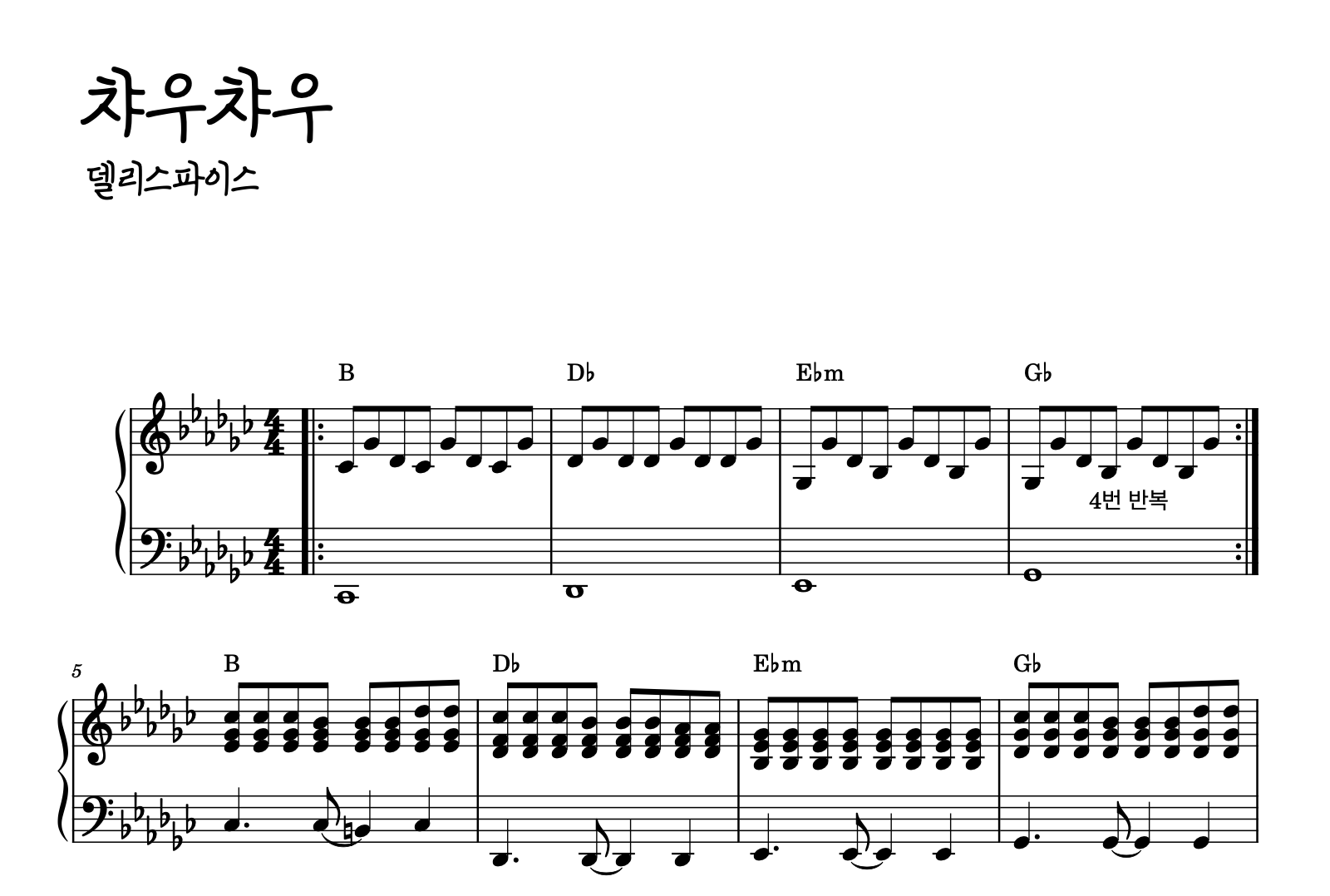 2) 델리스파이스 - 챠우챠우 : https://www.mapianist.com/sheet/148405