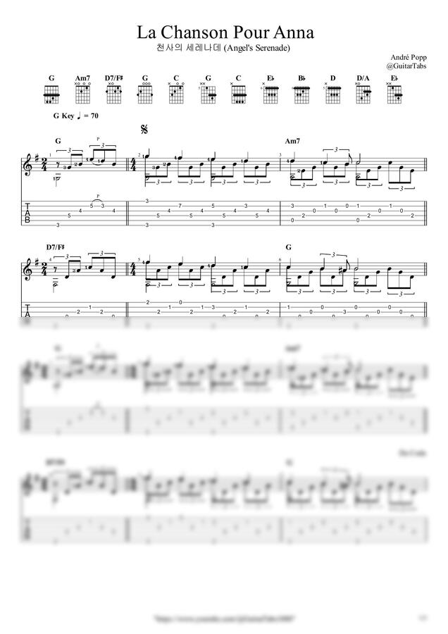 G Key / 3p / 1단(솔로) / 5선(Staff) / 타브(TAB) / 운지(Fingering) / 코드(Chords)