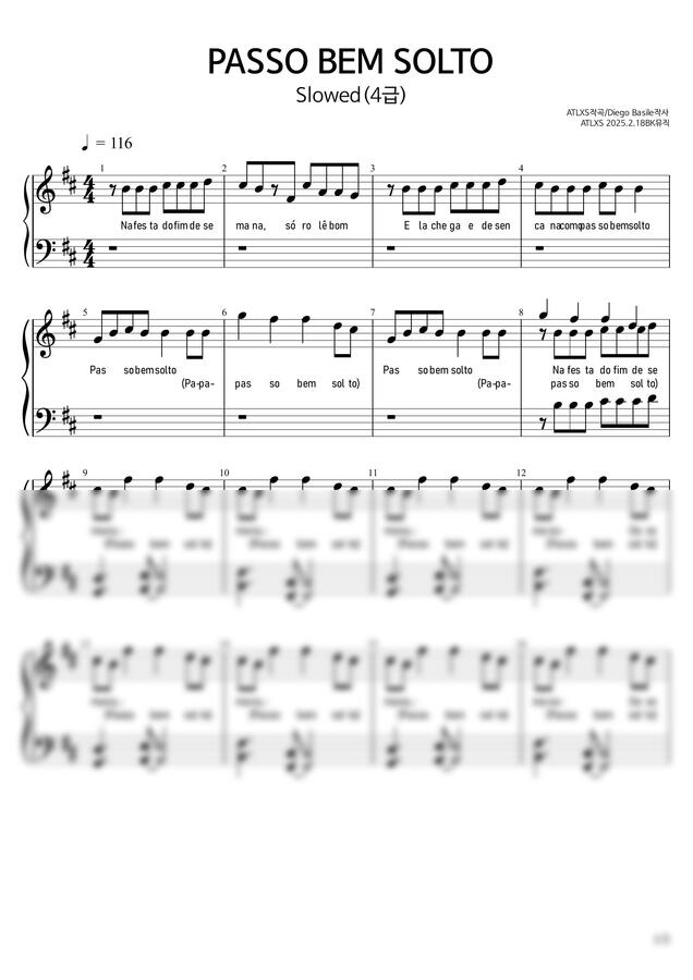 🎹 PASSO BEM SOLTO (SLOWED) - 피아노 악보