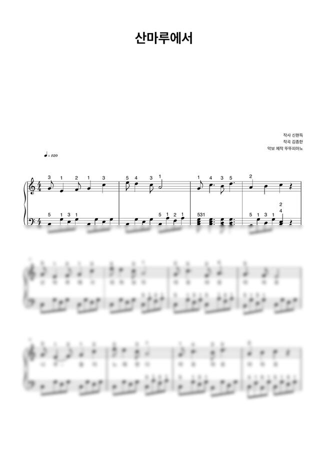 동요 산마루에서 (가사 첨부 / 손가락 번호 / 쉬운 악보) by 뚜뚜피아노