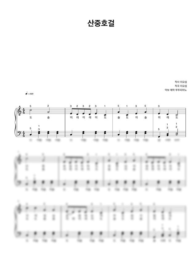동요 산중호걸 (계이름 악보 / 가사 첨부 / 손가락 번호 / 쉬운 악보) by 뚜뚜피아노
