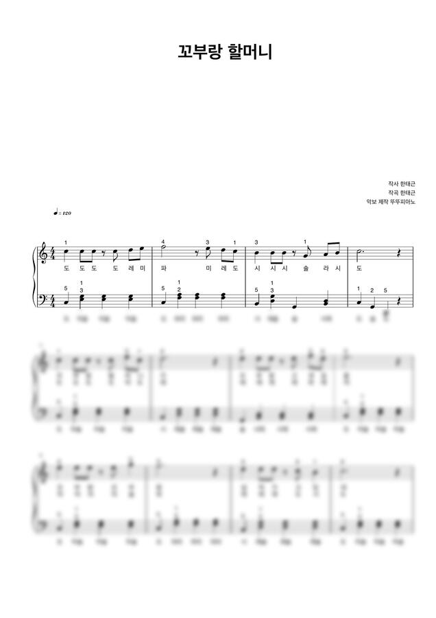 동요 꼬부랑 할머니 (계이름 악보 / 가사 첨부 / 손가락 번호 / 쉬운 악보) by 뚜뚜피아노