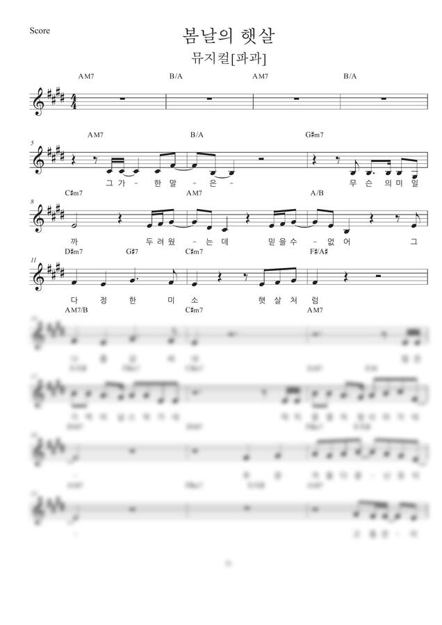 뮤지컬[파과] 중 봄날의햇살 넘버 멜로디악보 입니다:)