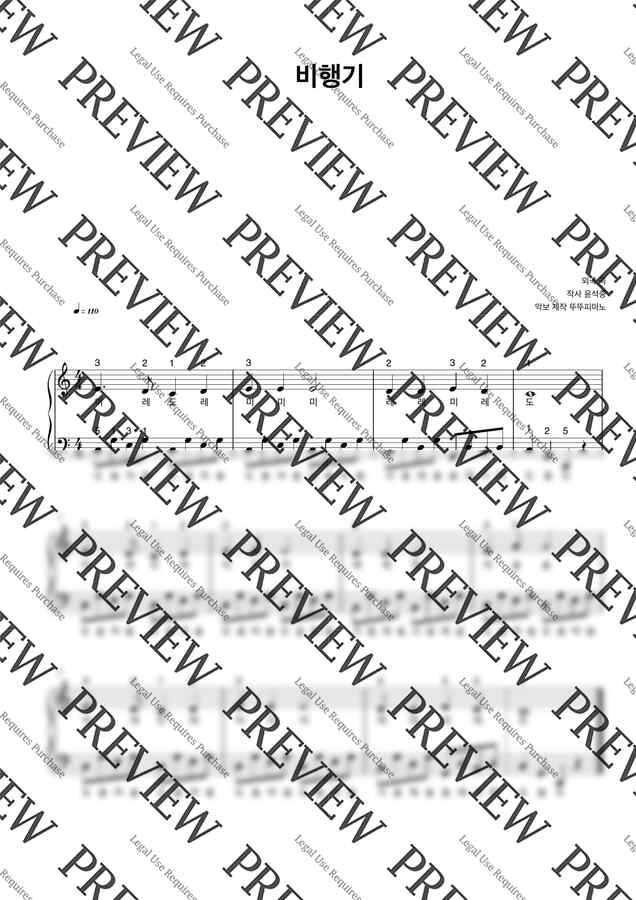 동요 비행기 (계이름 악보 / 손가락 번호 / 쉬운 악보) by 뚜뚜피아노