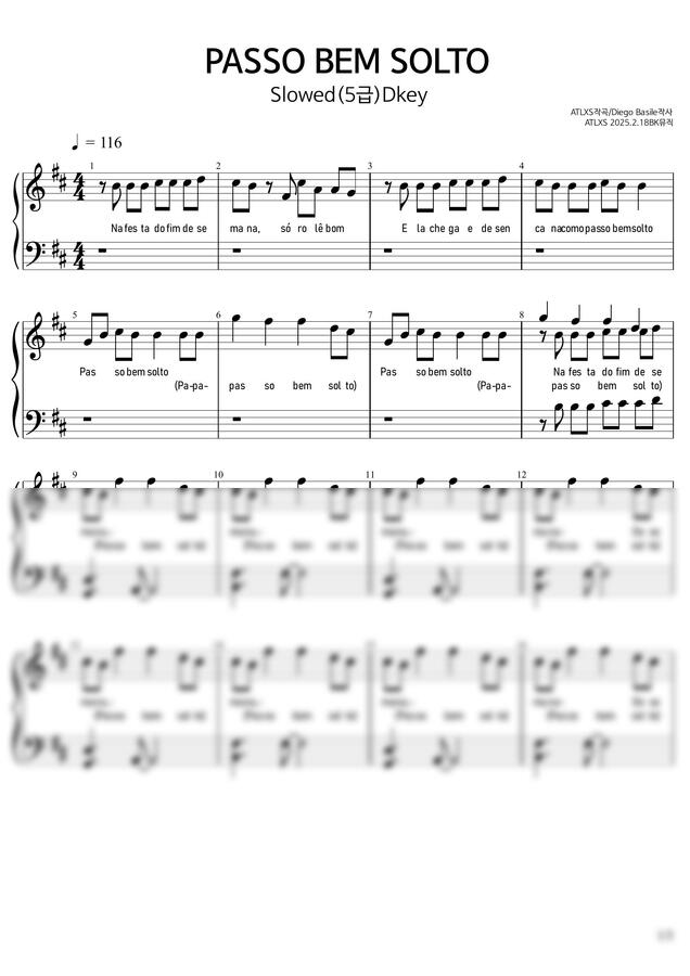 🎹 PASSO BEM SOLTO (SLOWED) - 피아노악보