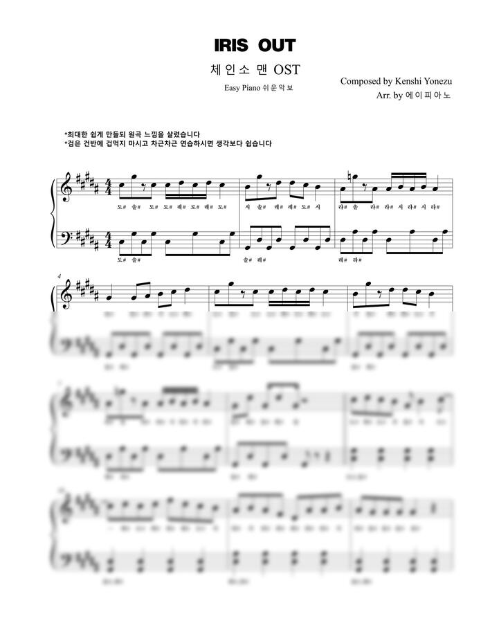 요네즈 켄시 [체인소 맨 OST] - 아이리스 아웃 IRIS OUT (계이름악보+일반악보) (왕초보 쉬운악보) by 에이피아노0