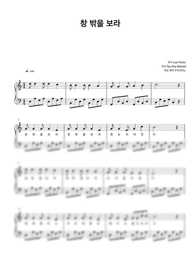 크리스마스 캐롤 - 창 밖을 보라 (가사 첨부 / 쉬운 악보) by 뚜뚜피아노0
