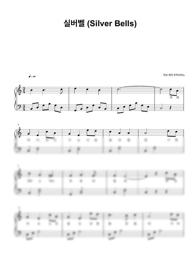 크리스마스 캐롤 - 실버벨 Silver Bells (가사 첨부 / 쉬운 악보) by 뚜뚜피아노