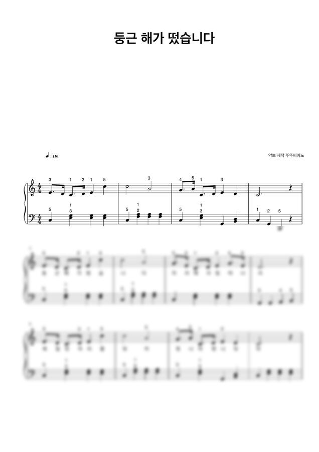 동요 둥근 해가 떴습니다 (가사 첨부 / 손가락 번호 / 쉬운 악보) by 뚜뚜피아노