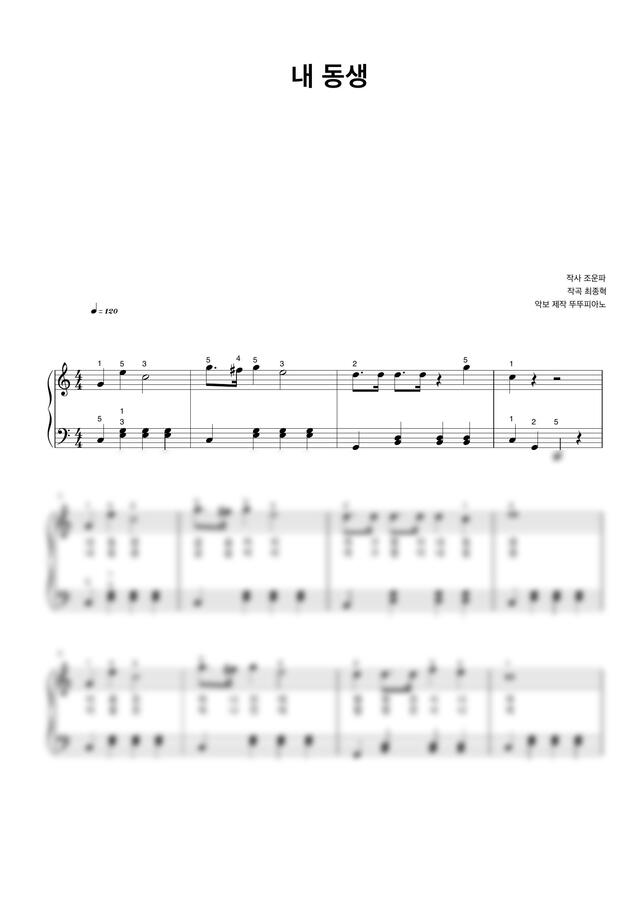 동요 내 동생 (가사 첨부 / 손가락 번호 / 쉬운 악보) by 뚜뚜피아노