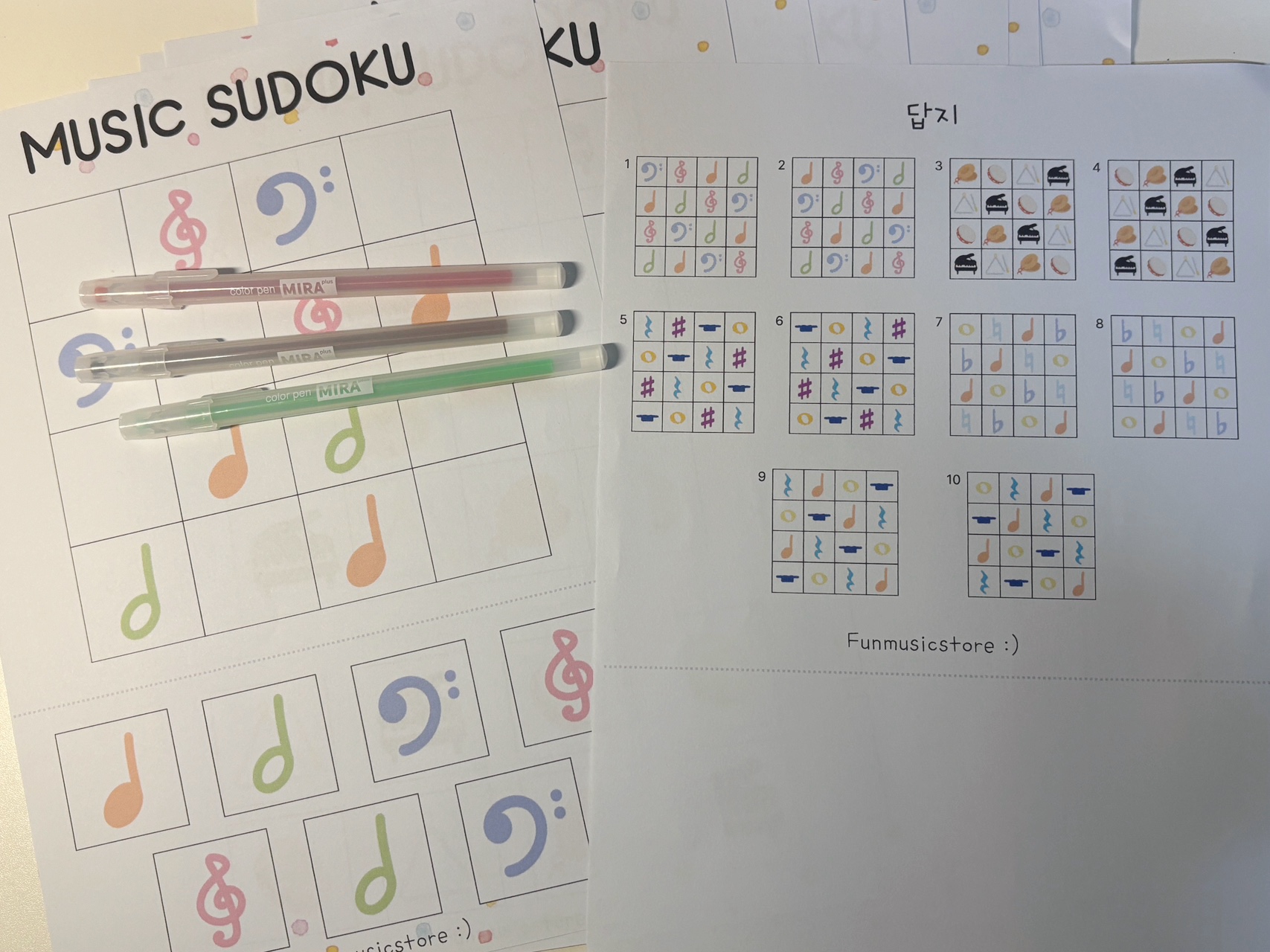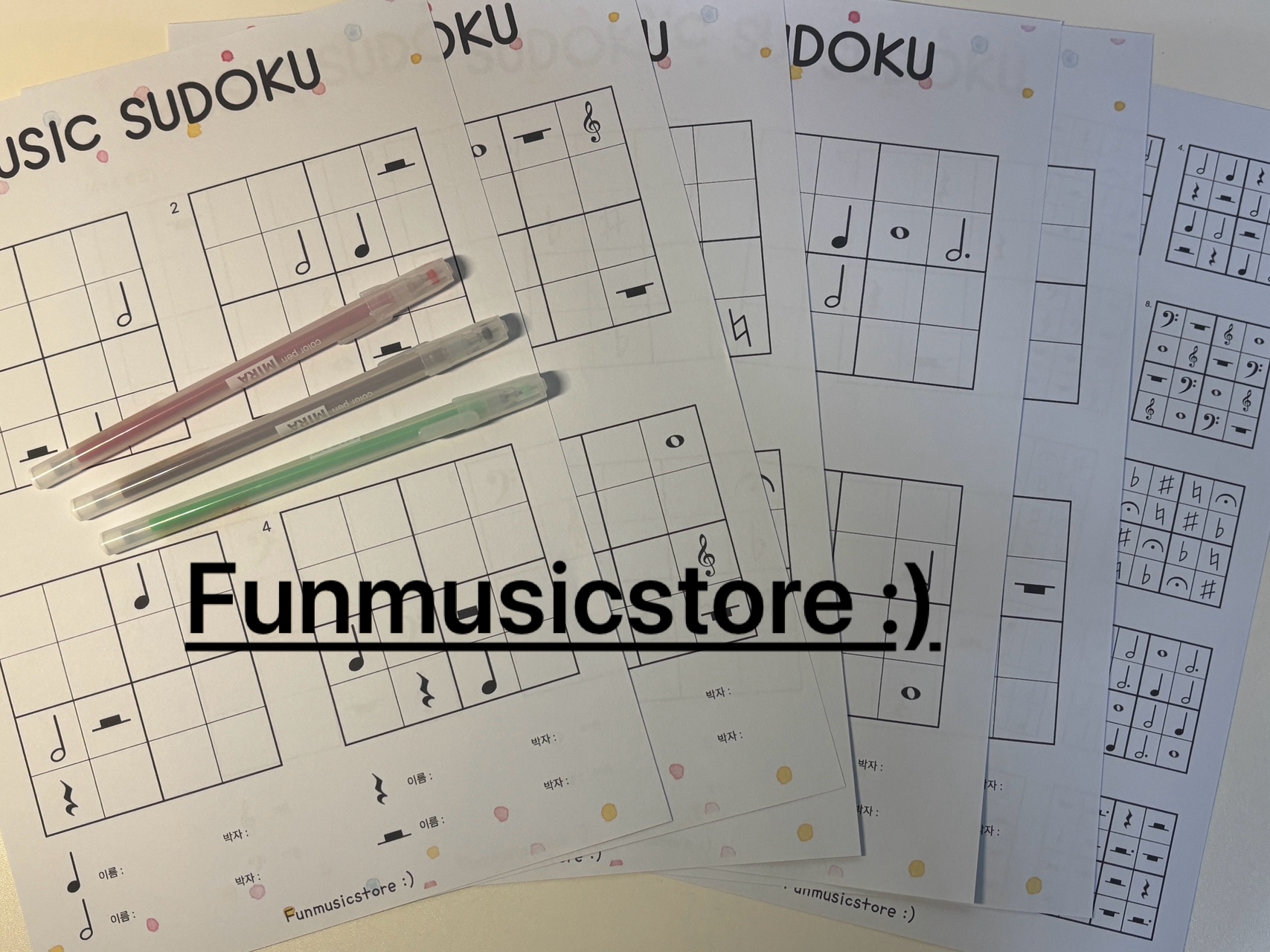 유치부 부터 고학년까지 모두 즐길 수 있는 "펀뮤직스토어만의 감성이 담긴" 뮤직 스도쿠 워크지 입니다 :)