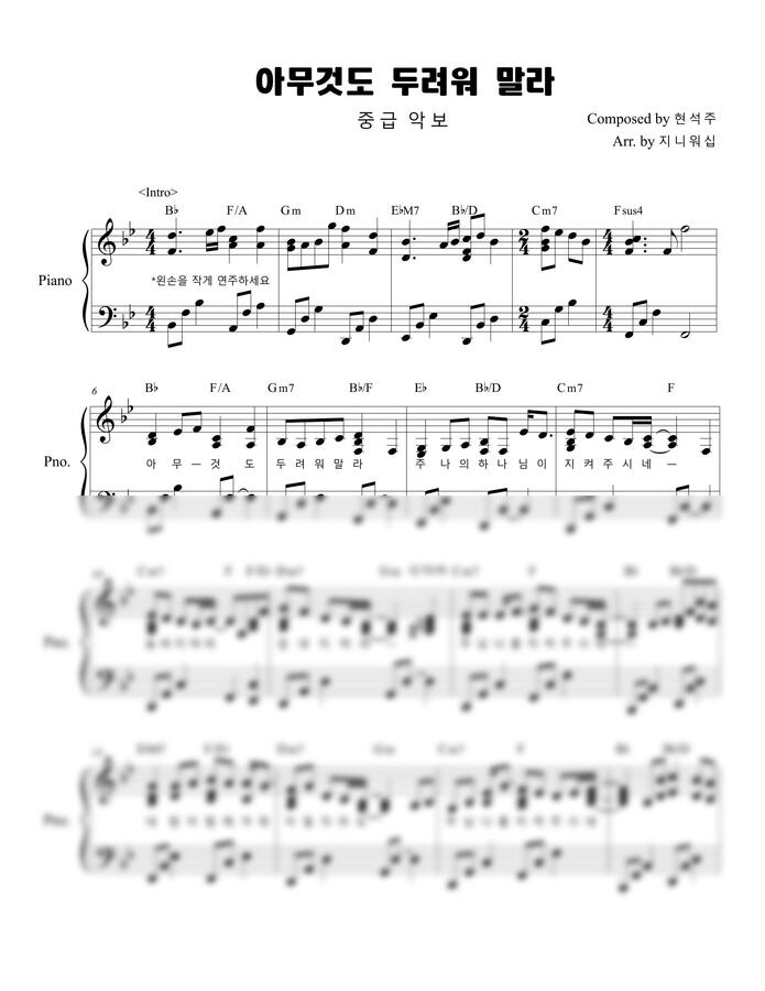 아무것도 두려워 말라 중급 반주 바로가기 C키 https://www.mapianist.com/sheet/149660