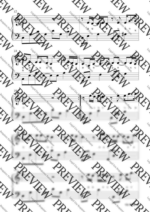 원곡 전체 악보이며, 왼손 반주를 간결하게 편곡했습니다.