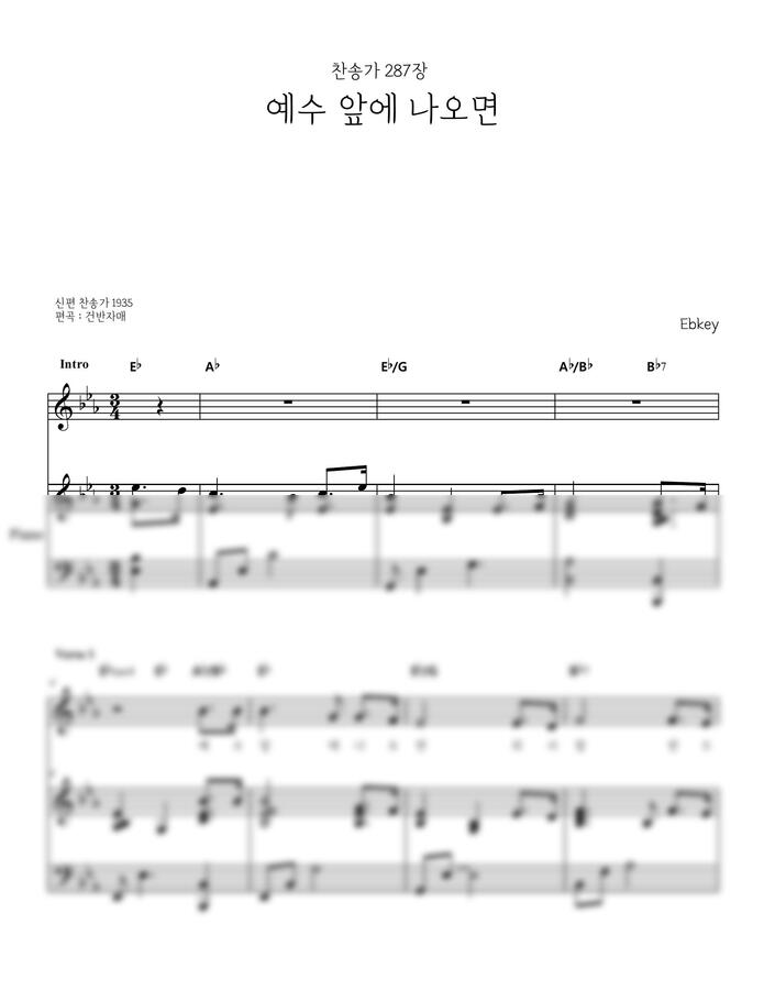 이번 곡은 찬송가 287장 - 예수 앞에 나오면 입니다.