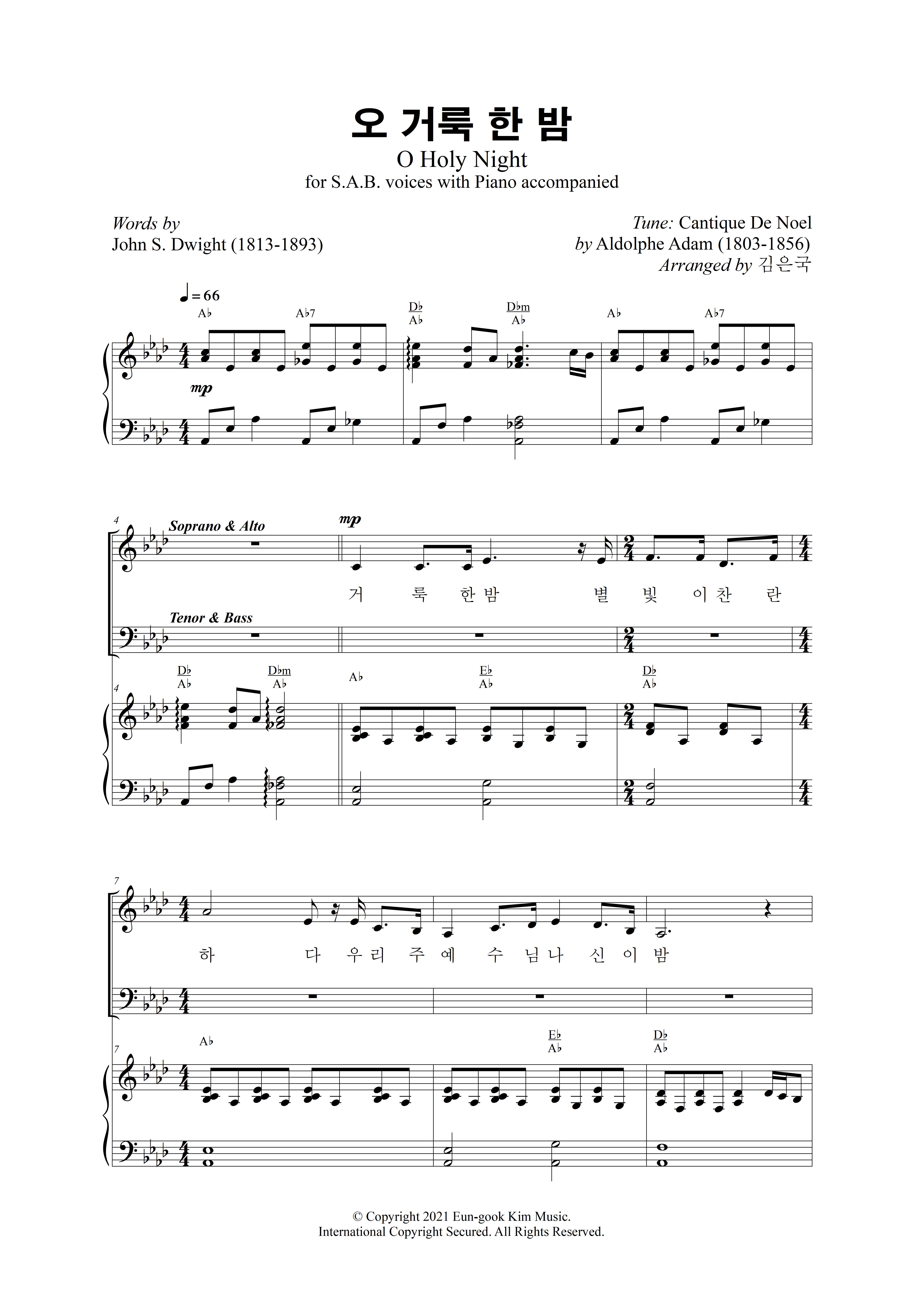 크리스마스 찬송가 [오 거룩한 밤] 혼성 3부 편곡 합창입니다.