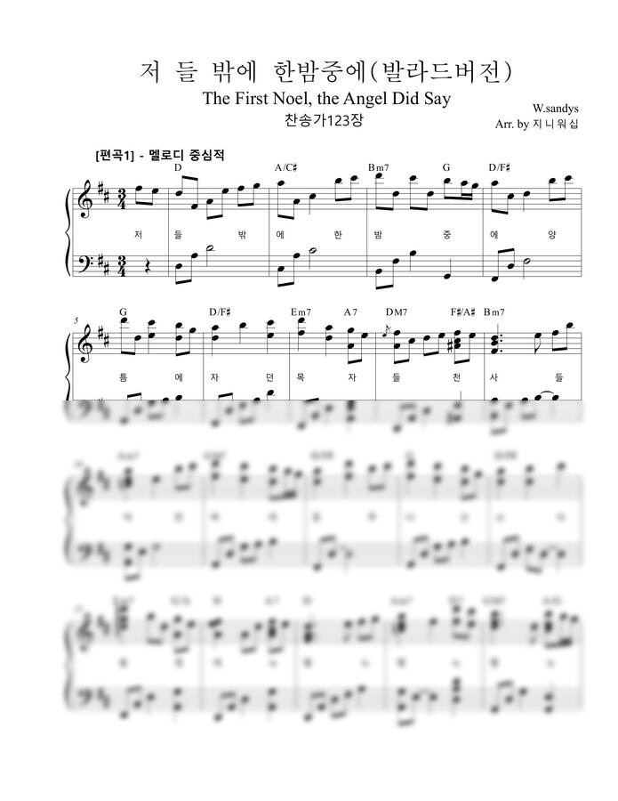 저 들 밖에 한 밤 중에 회중찬양용 편곡 바로가기 https://www.mapianist.com/sheet/73613