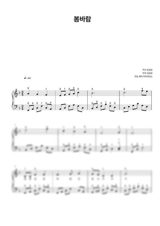 동요 봄바람 (가사 첨부 / 손가락 번호 / normal ver.) by 뚜뚜피아노