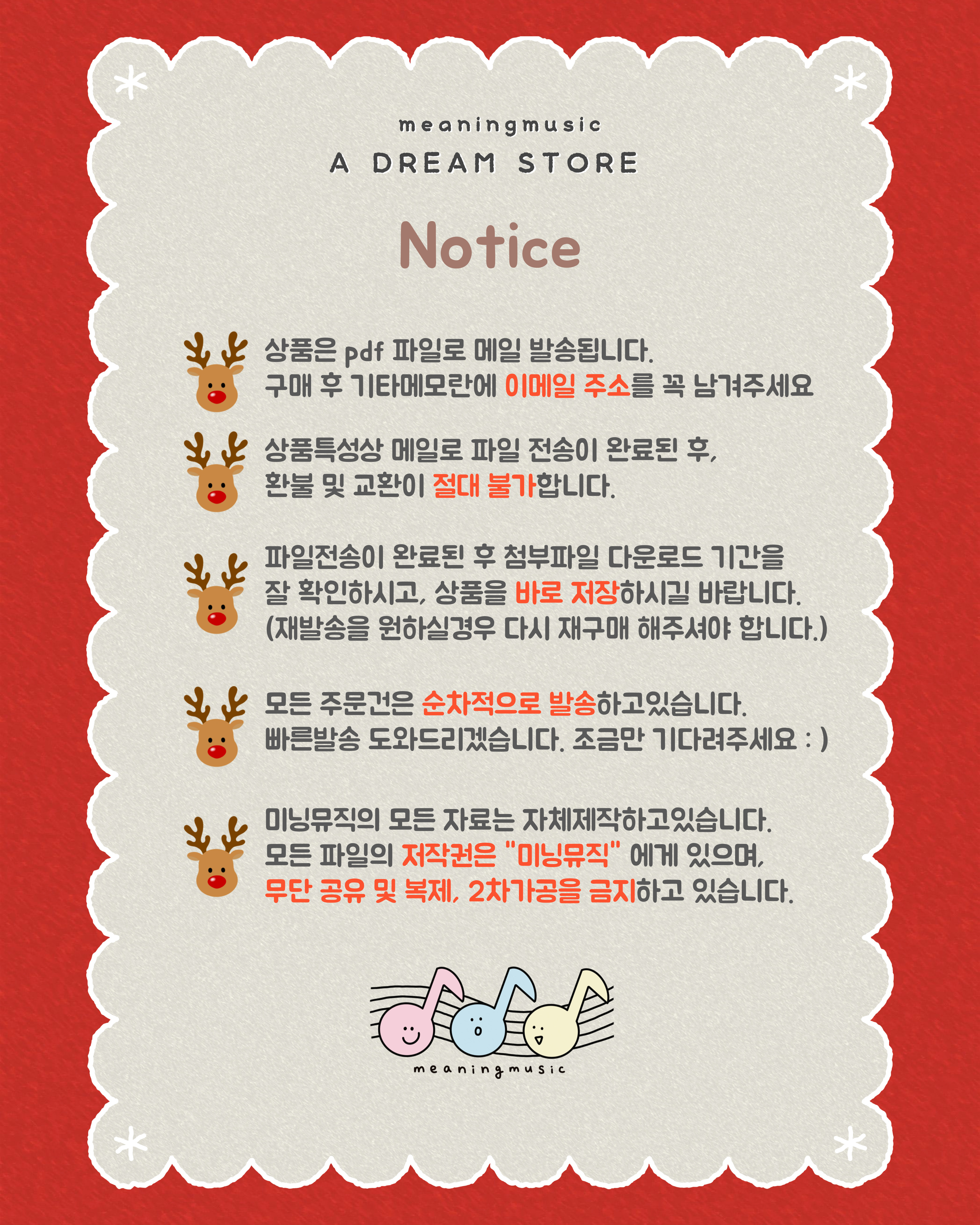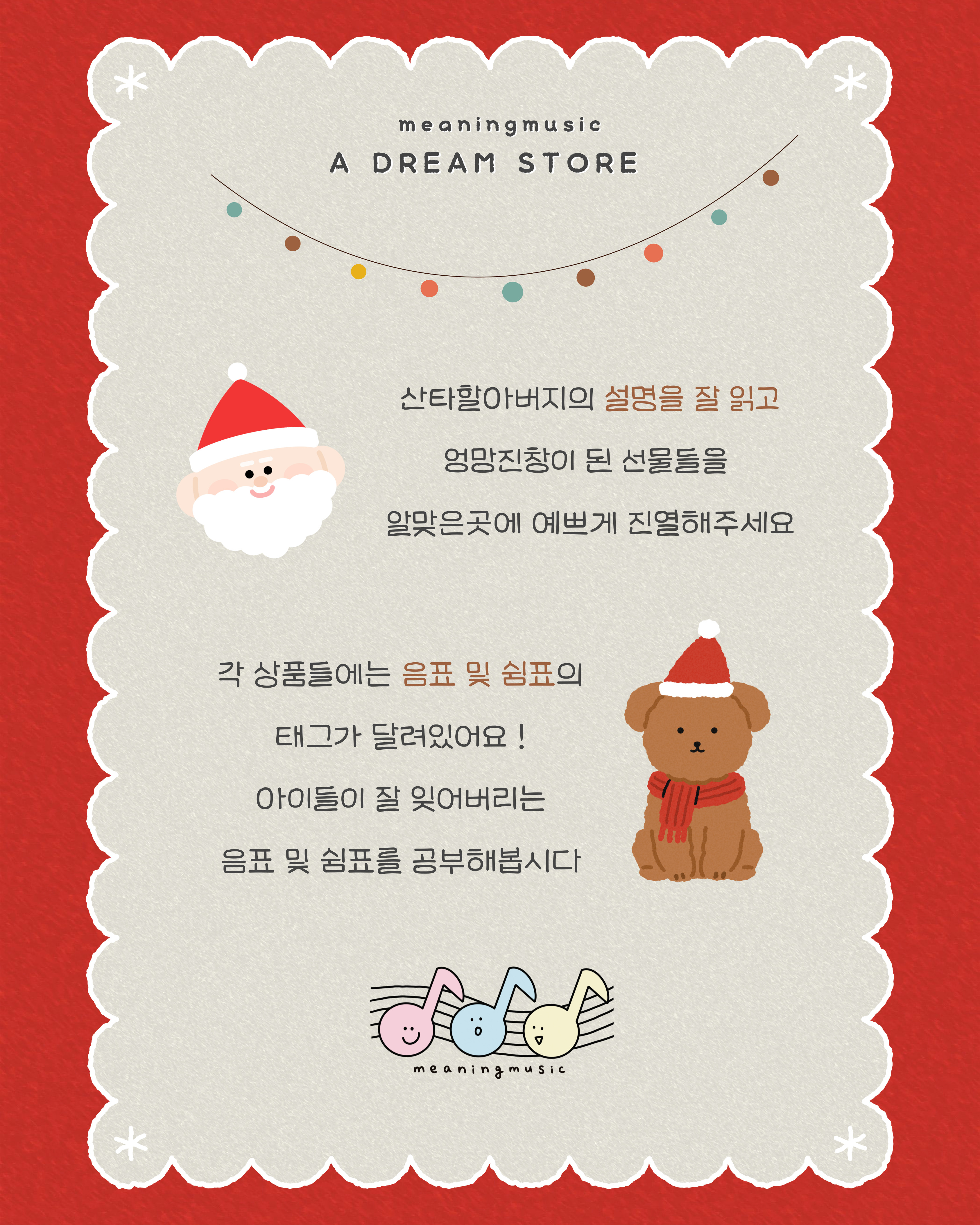 다가오는 크리스마스를 맞이하여 학습지에 삽입된 캐릭터, 일러스트 모두 미닝뮤직이 꼼꼼히 디자인 하여 제작한