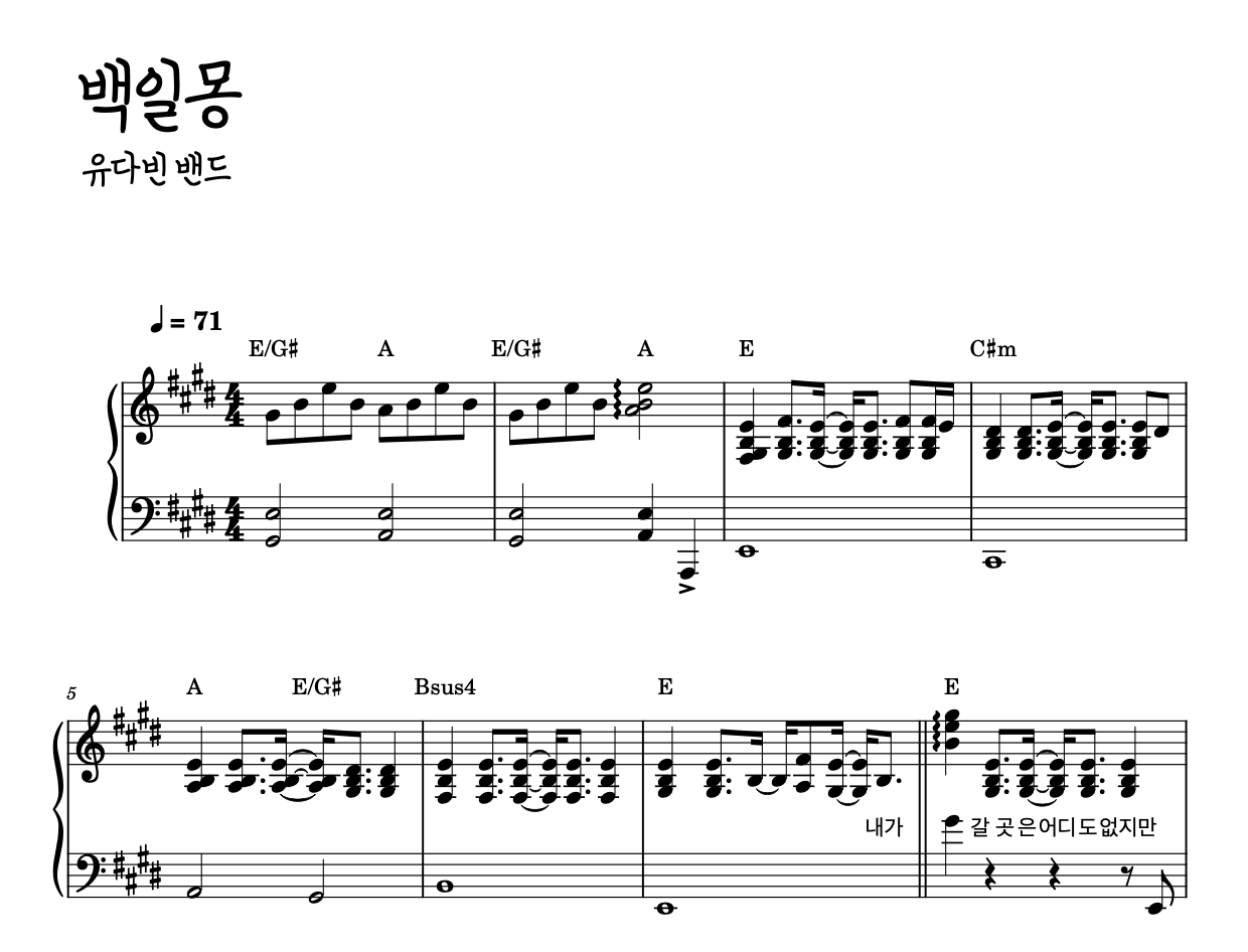 4) 유다빈 밴드 - 백일몽 : https://www.mapianist.com/sheet/150688