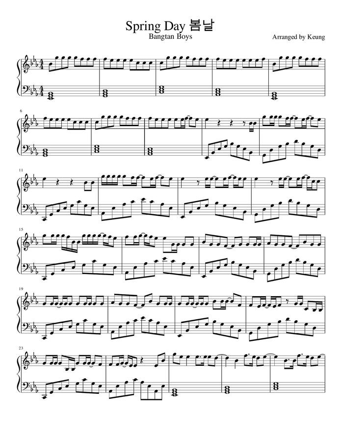 방탄소년단 봄날 악보입니다!
