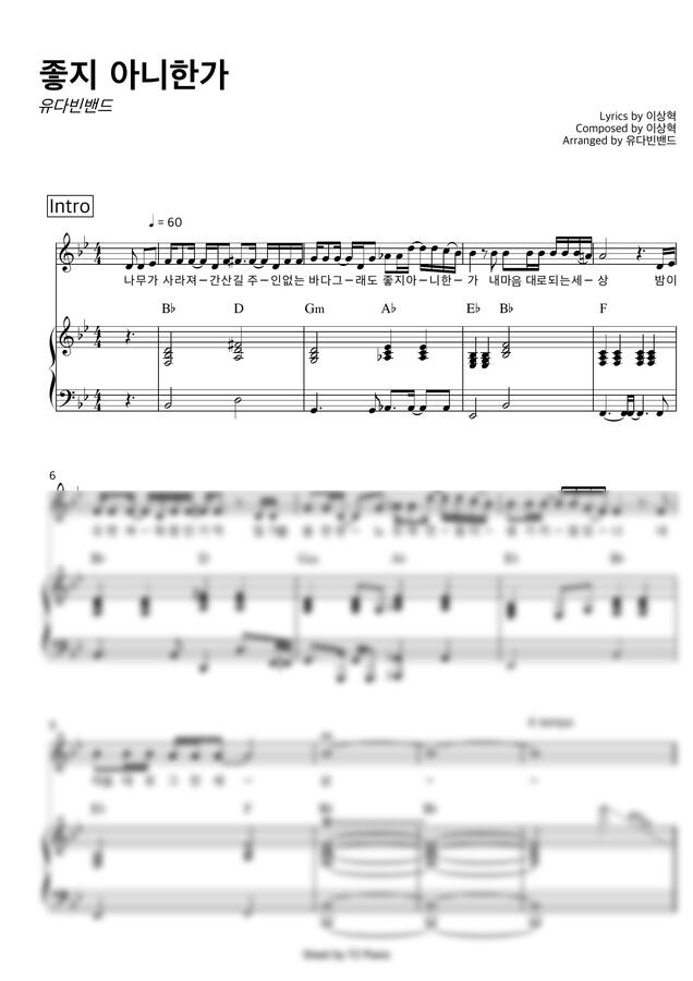 유다빈밴드 - 좋지 아니한가 (3단악보,코드반주) by 티즈피아노