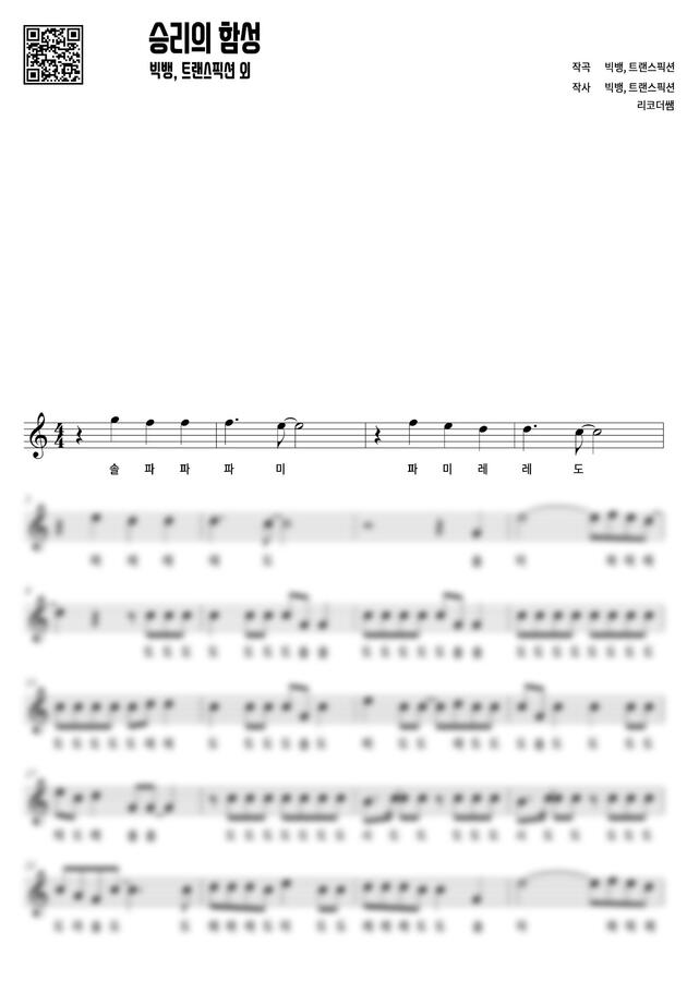 2010월드컵 응원가 - 승리의 함성 (계이름) by 리코더쌤
