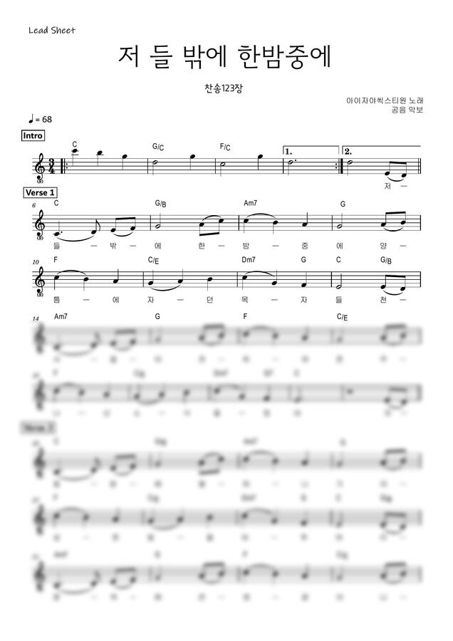 아이자야씩스티원 크리스마스 워십 - 저 들 밖에 한밤중에(리드시트 C+D키)