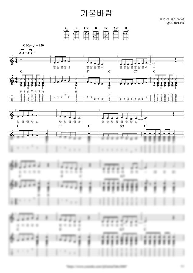C Key / 2p / 2단(노래+반주) / 5선(Staff) / 타브(TAB) / 가사(Lyrics) / 코드(Chords)